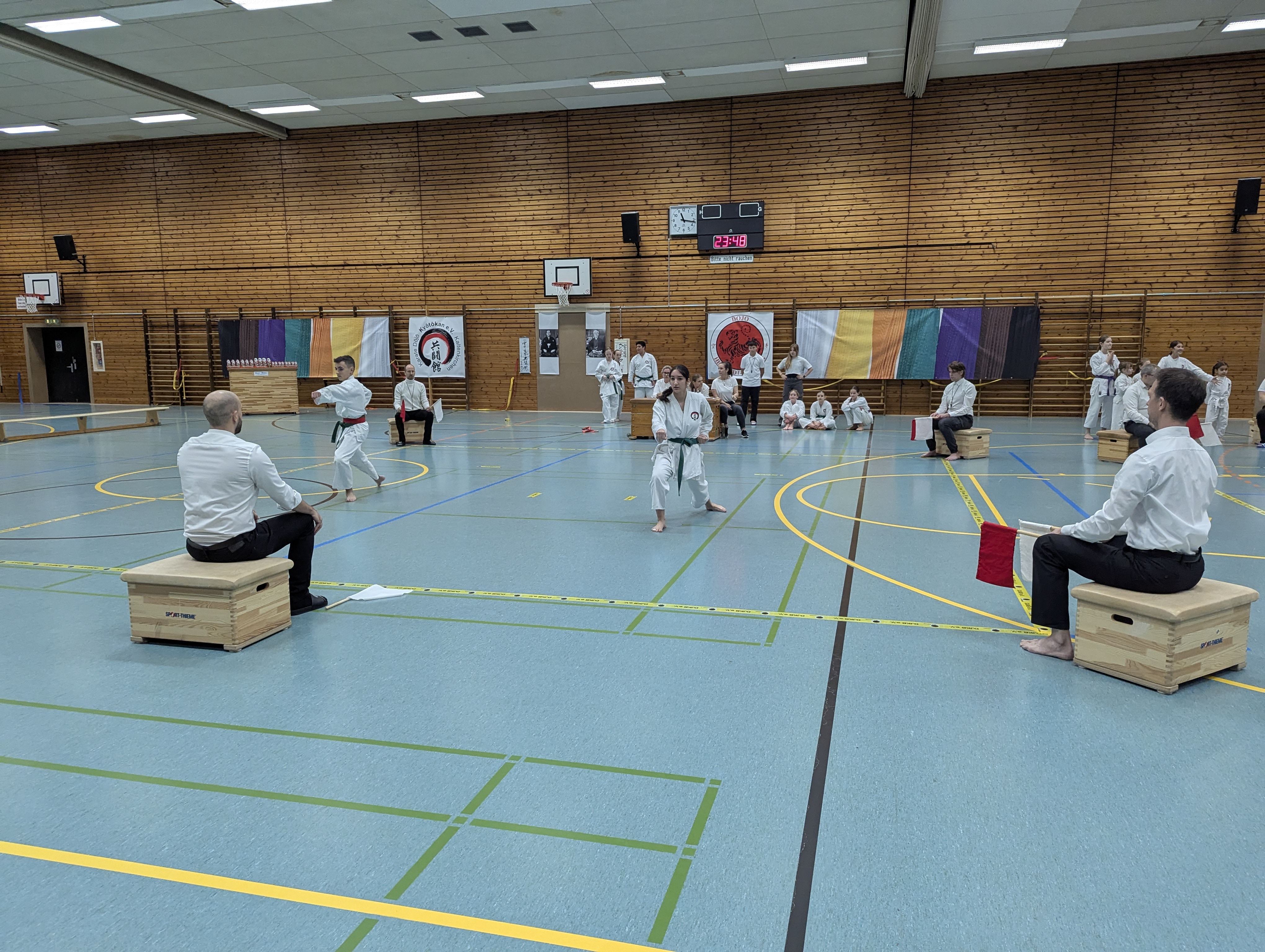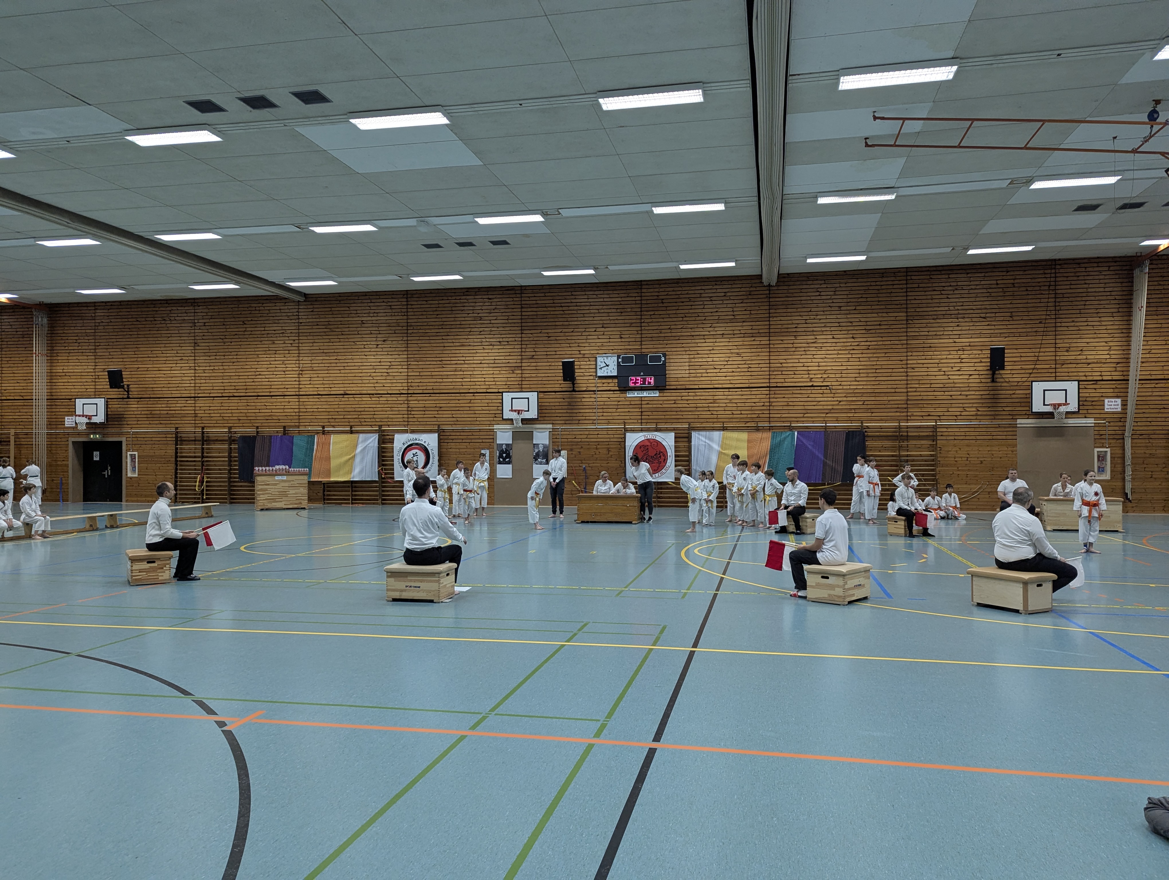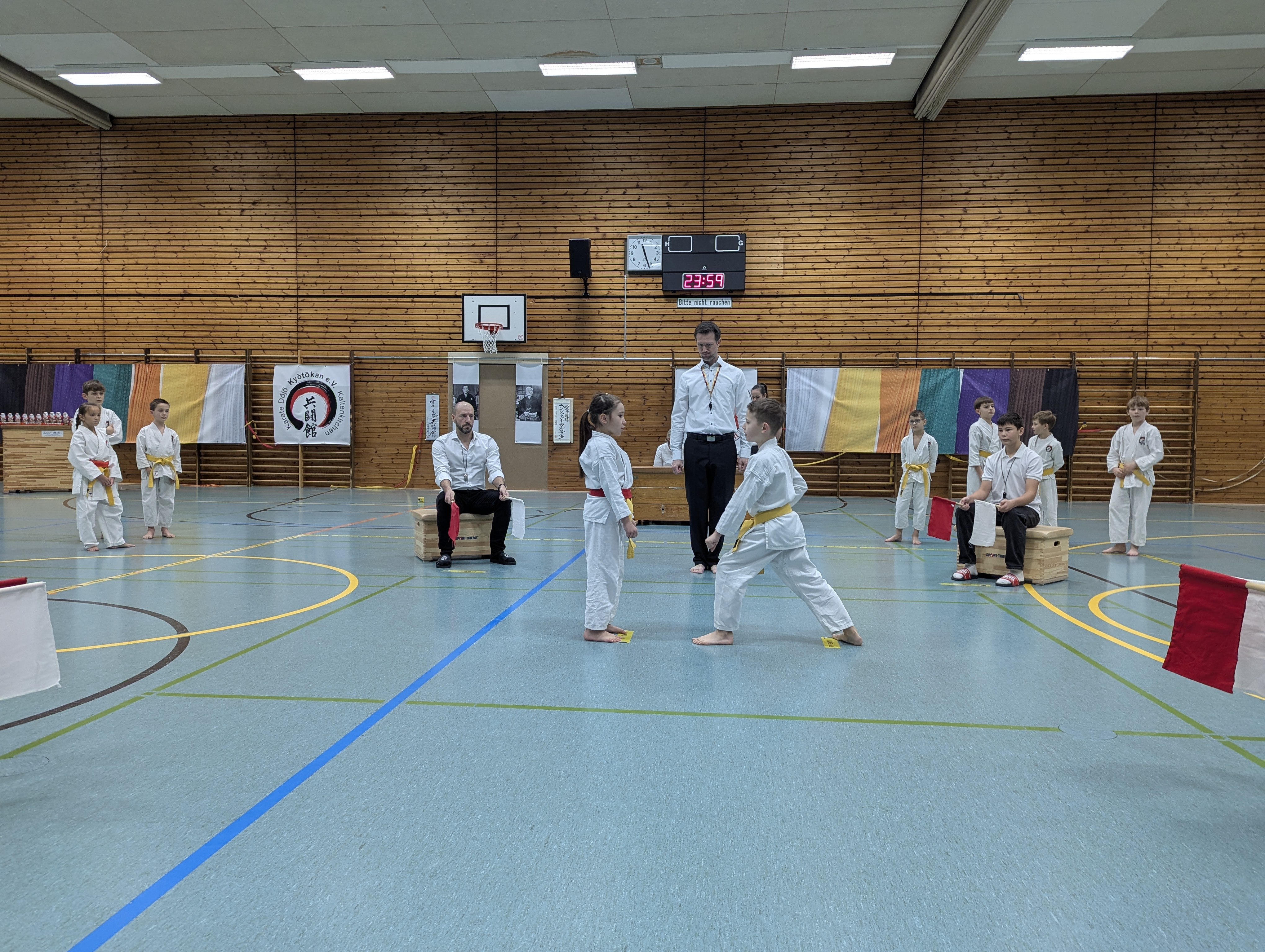 In 12 Gruppen - unterteilt nach Alter, Disziplin und Graduierung - zeigten die Nachwuchs-Athleten ihr Können in den Disziplinen Kata, Kihon-Ippon Kumite und Jiyu-Ippon Kumite. Die jungen Karateka beeindruckten dabei nicht nur mit hohem Einsatz und starkem Kampfgeist, sondern auch mit einem fairen Umgang und ausgesprochenem Sportsgeist. So herrschte trotz "Wettkampf" ein Gefühl des Miteinander, anstatt eines Gegeneinander.