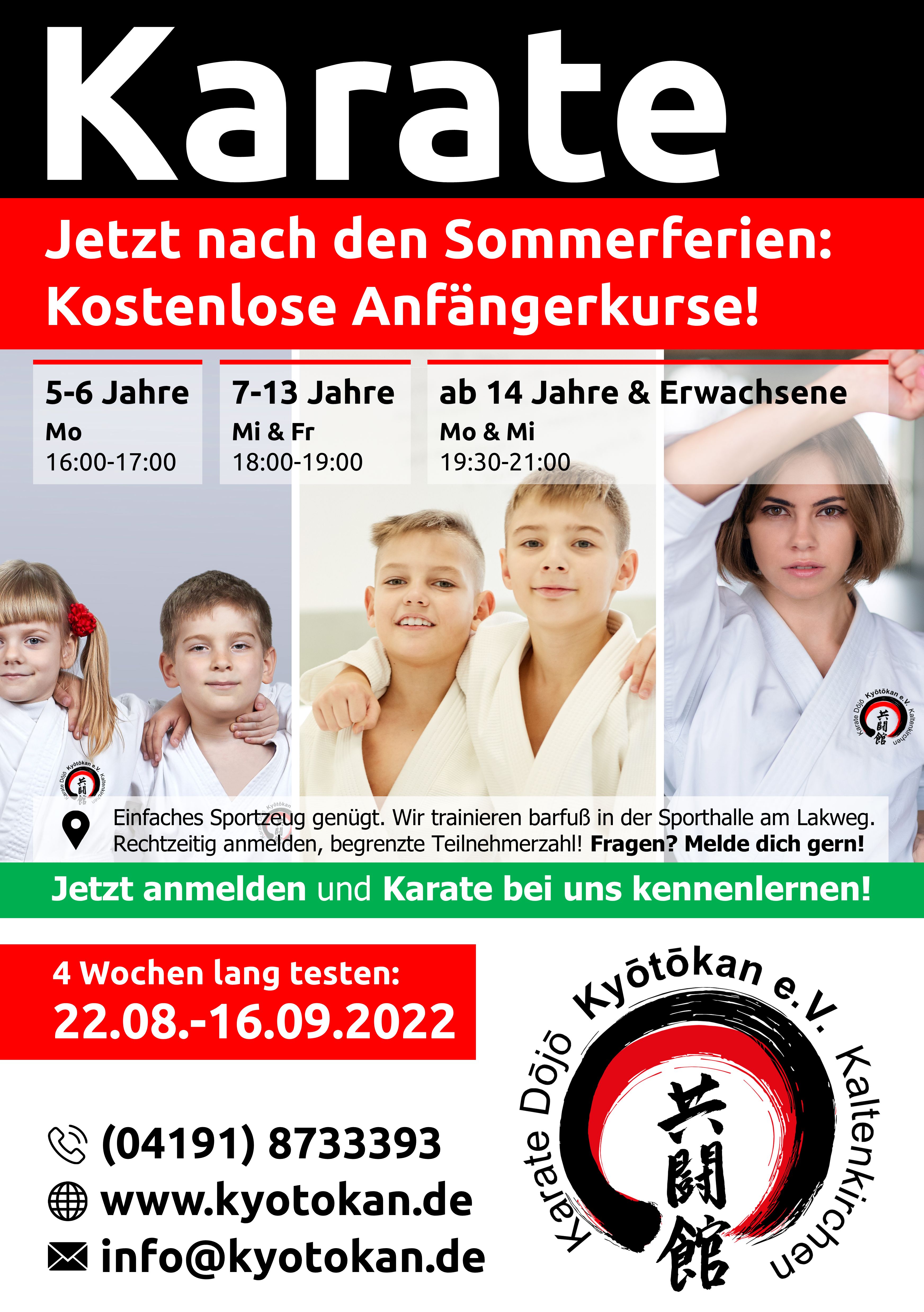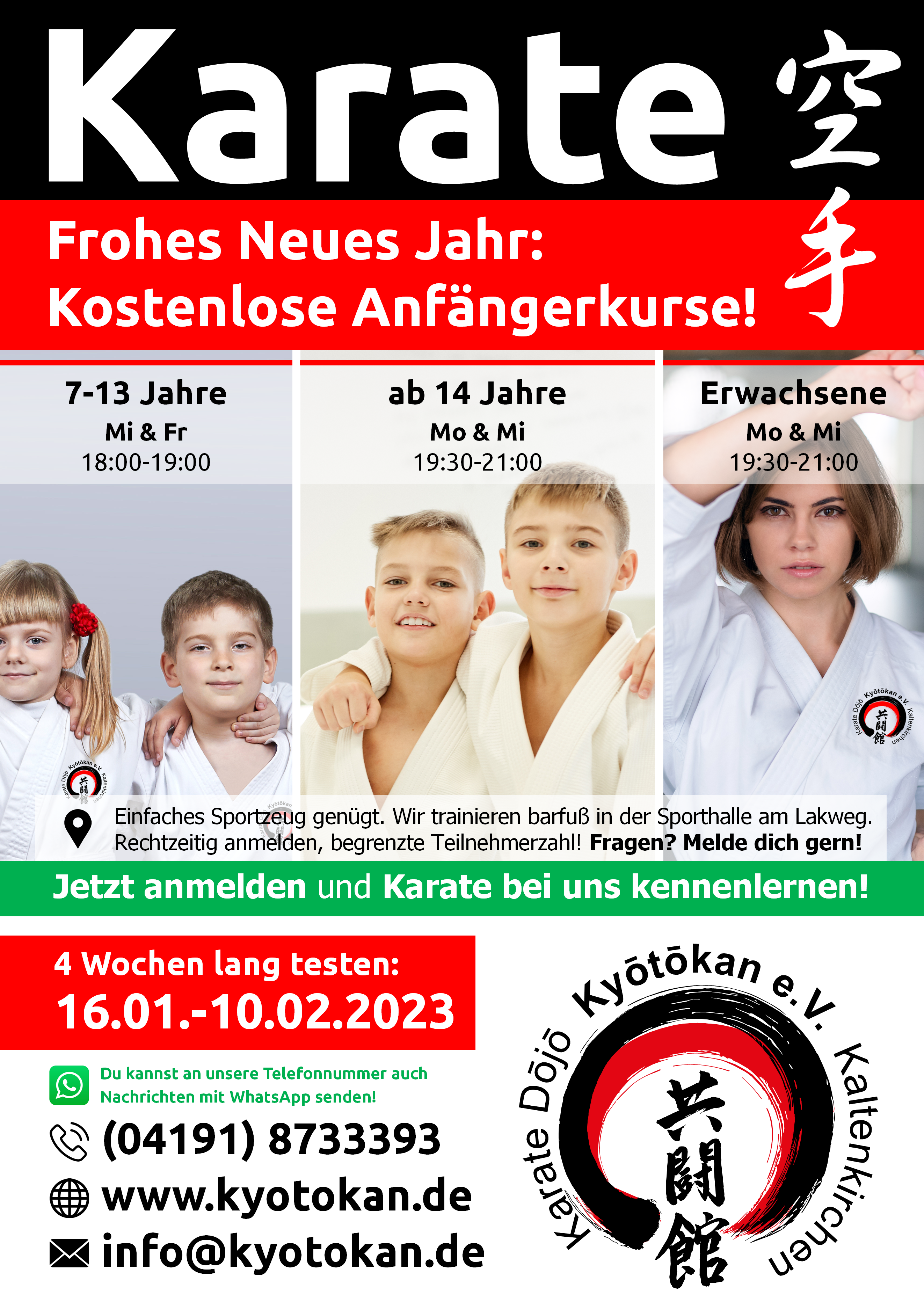 Am vergangenen Samstag fand in der Sporthalle der Gemeinschaftsschule Rhen das mittlerweile traditionelle Nikolausturnier der Karate Dojos Kyotokan Kaltenkirchen und Henstedt-Ulzburg statt. Mit 46 Teilnehmern im Alter von 6 bis 15 Jahren war das Turnier wieder gut besucht.